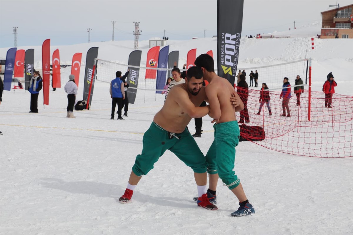 Program kapsamında kar güreşi ve bilek güreşi müsabakaları büyük ilgi görürken, kar voleybolu ve rafting kayağı etkinlikleri izleyenlere heyecan dolu anlar yaşattı. Okçuluk branşında ise sporcular, karla kaplı parkurda yeteneklerini sergileyerek izleyicilerden alkış aldı.